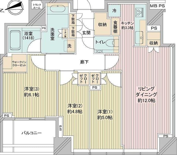 3 Bed / 2 Bath / LDK / 74.92m²