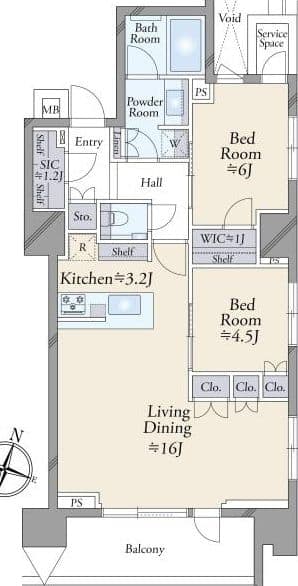 2 Bed / 1 Bath / LDK / 70.39m²
