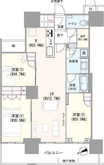 3 Bed / 2 Bath / LDK / 73.3m²