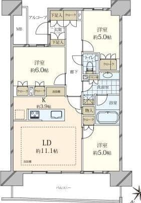 3 Bed / 2 Bath / LDK / 72.88m²