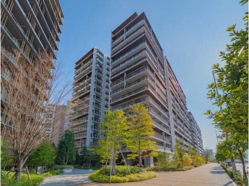 This 2023-built 3-bedroom, 2-bathroom apartment features 72.88 sqm of modern living space for $877k in the Harumi Flag development, providing a spacious family home in Tokyo's innovative new waterfront community.